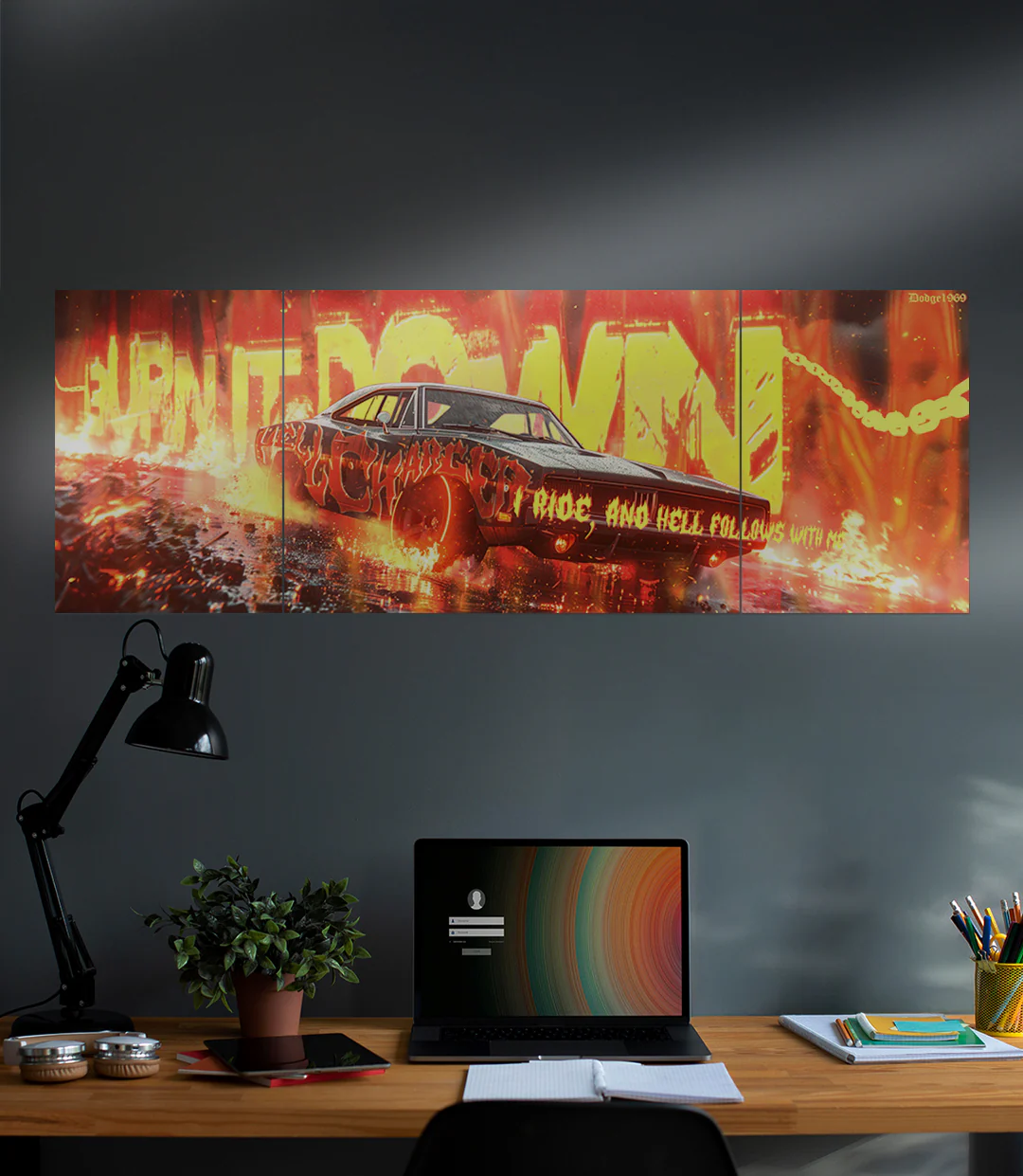 Premium high-definition wall poster of HELL CHARGER | Dodge Car Set | 3 Piece Set, designed to instantly upgrade the aesthetic of your room.